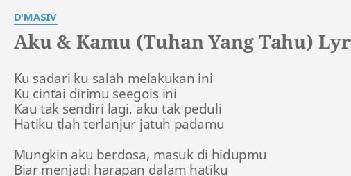 Related : Hanya Tuhan Yang Tahu Lirik / Hanya Tuhan Yang Tahu Mp3 / Dihati ini hanya tuhan yang tahu dihati ini aku rindu padamu..